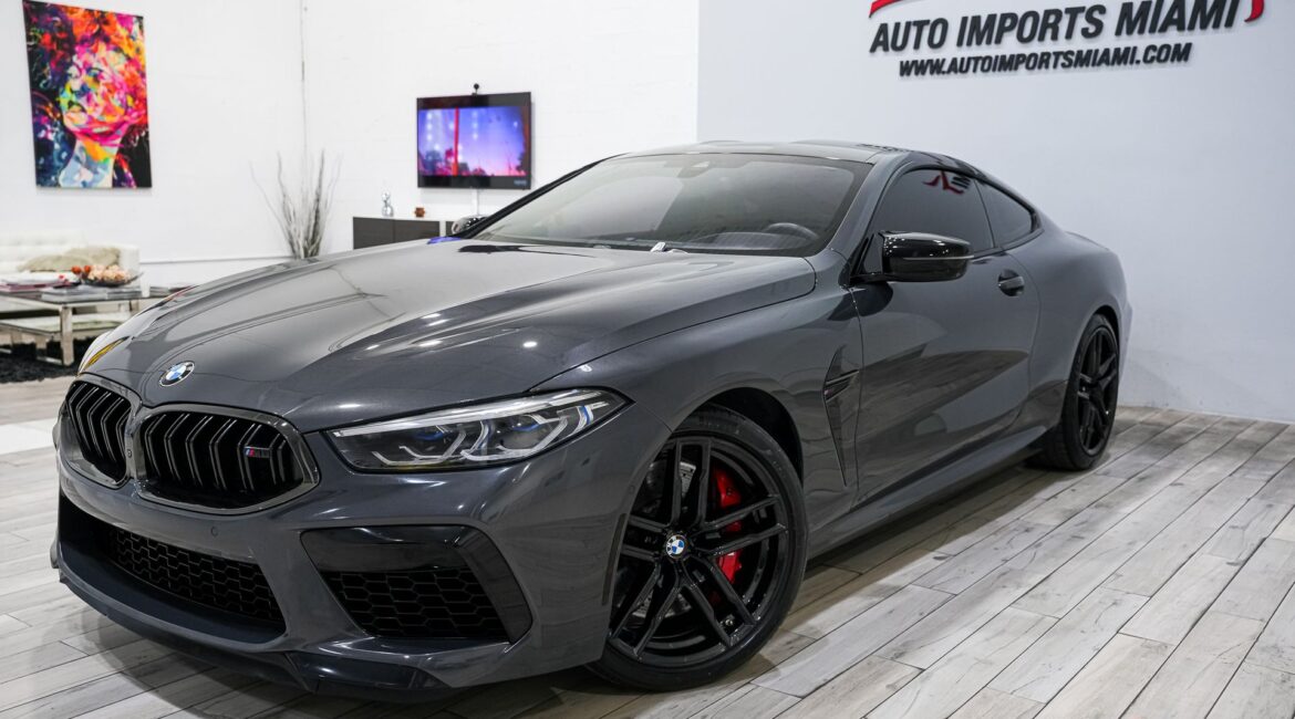 AUTO IMPORTS MIAMI PRESENTS....2022 BMW M8 COUPE COMPETITION AWD....BRANDS HATCH GREY METALLIC OVER SAKHIR ORANGE MERINO LEATHER.....COMPETITION PACKAGE!!!RARE M CARBON BUCKET SEATS!!!!617 HP TWIN-TURBOCHARGED ANIMAL...LOADED WITH OPTIONS....20" M DOUBLE SPOKE COMPETITION GLOSS BLACK WHEELS.....NAVIGATION.....DRIVING ASSISTANCE PACKAGE....WIRELESS CHARGING....CARBON FIBER ROOF...CLEAN CARFAX!!!+++100% CARFAX CERTIFIED!!!THIS VEHICLE COMES WITH 2 KEYS AND MANUALS....THIS STUNNING...