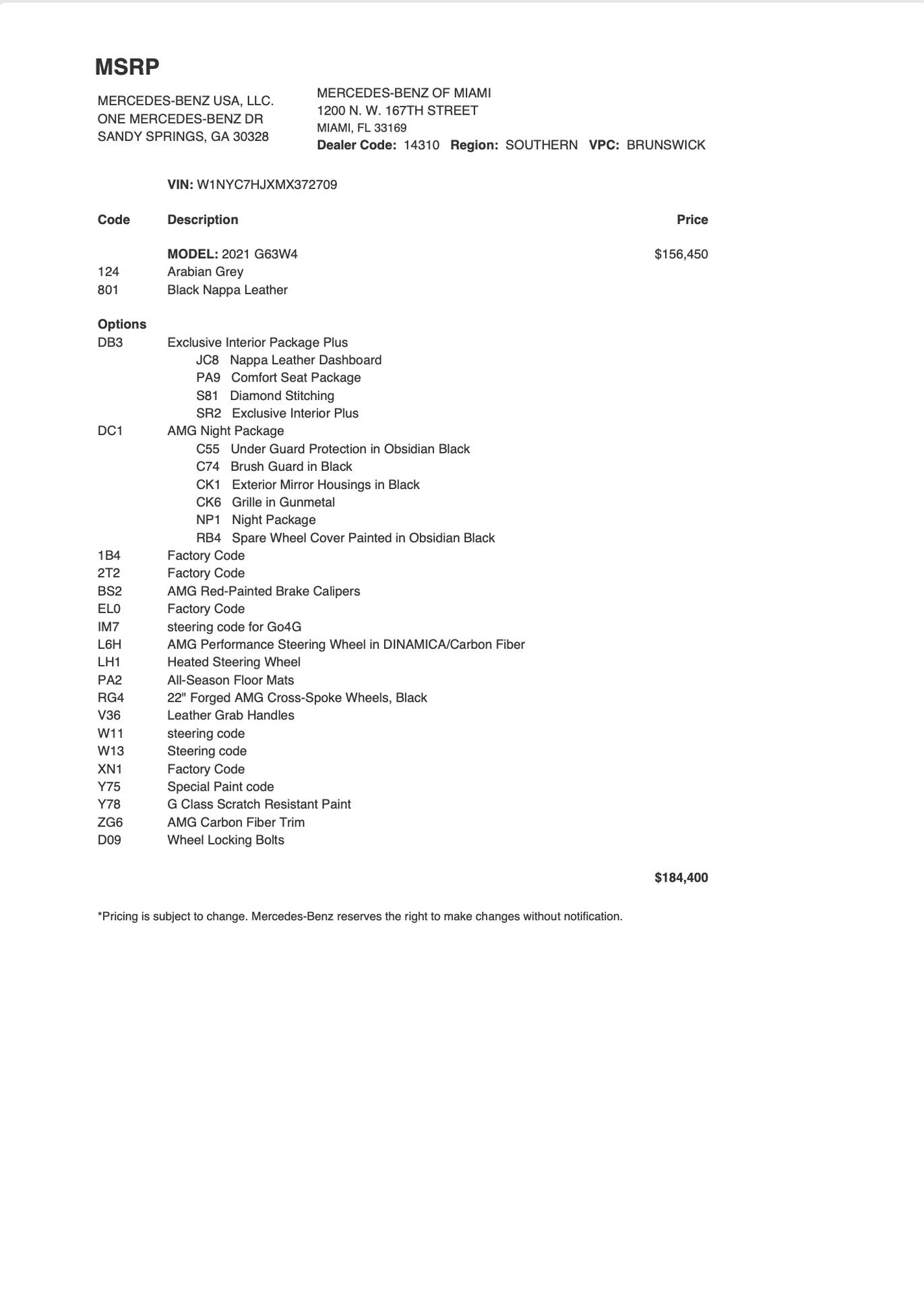 VIN: W1NYC7HJXMX372709