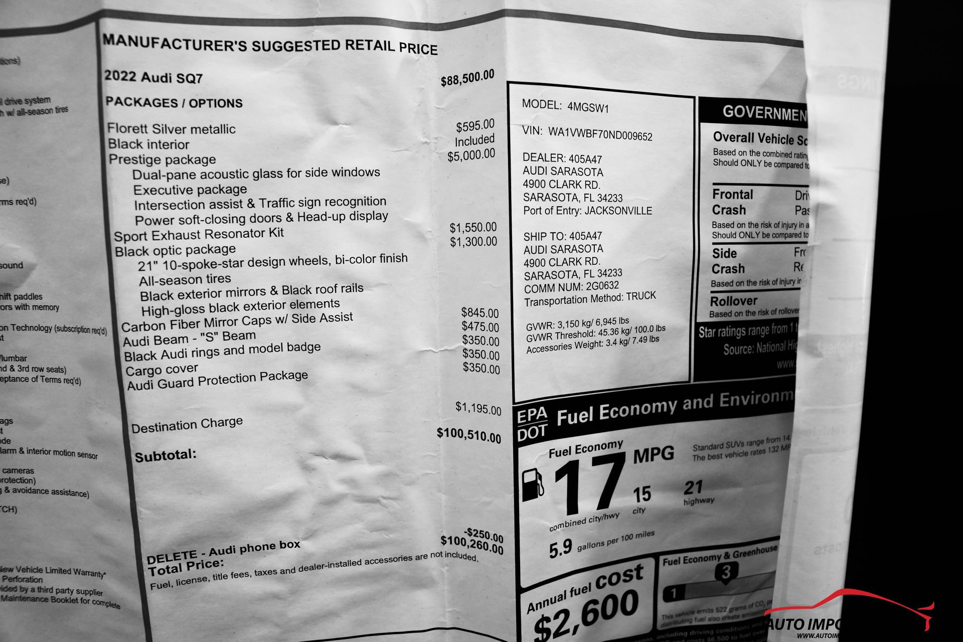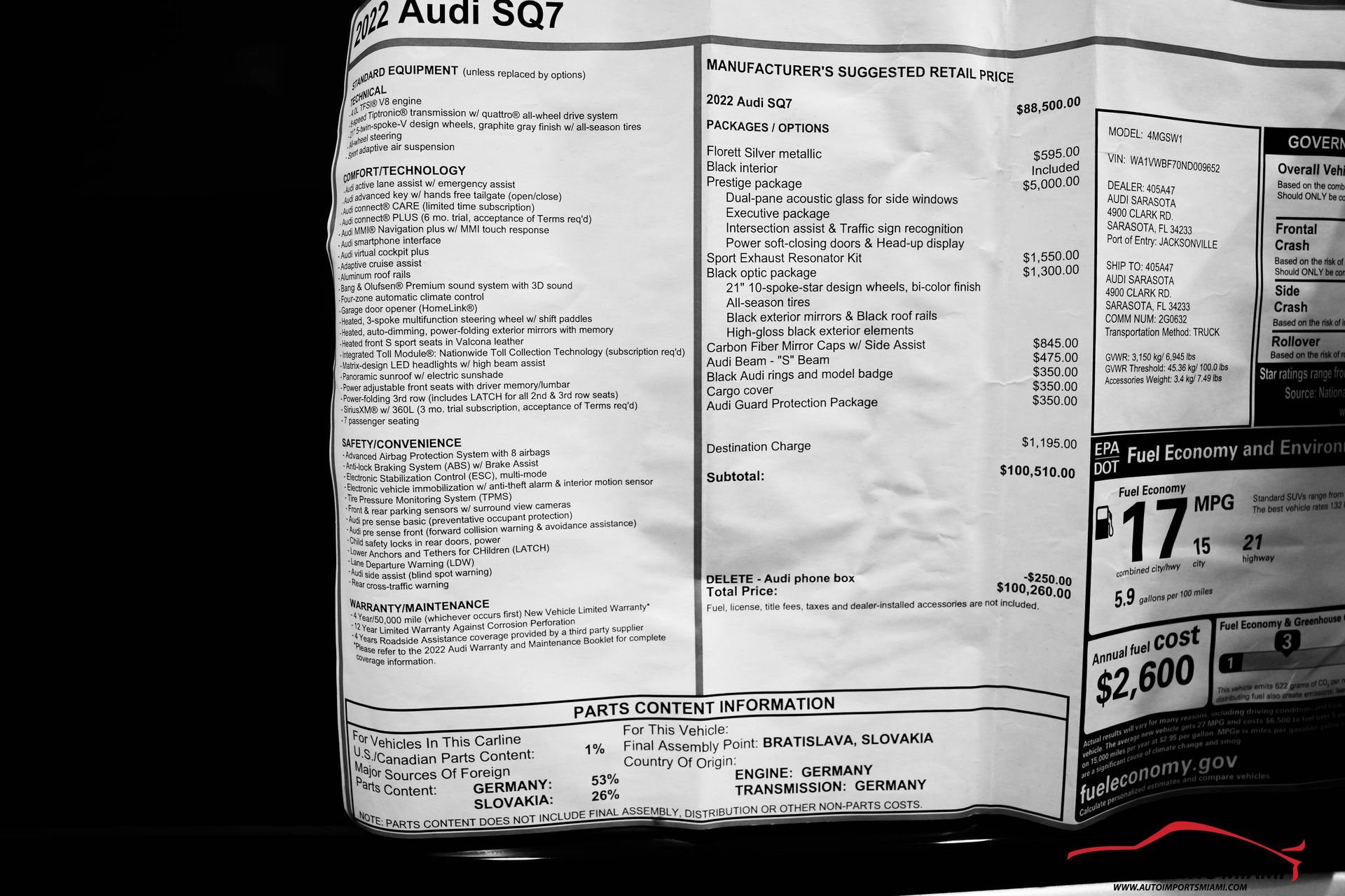 AUTO IMPORTS MIAMI PRESENTS…….2022 AUDI SQ7 4.0T QUATTRO PRESTIGE PKG…