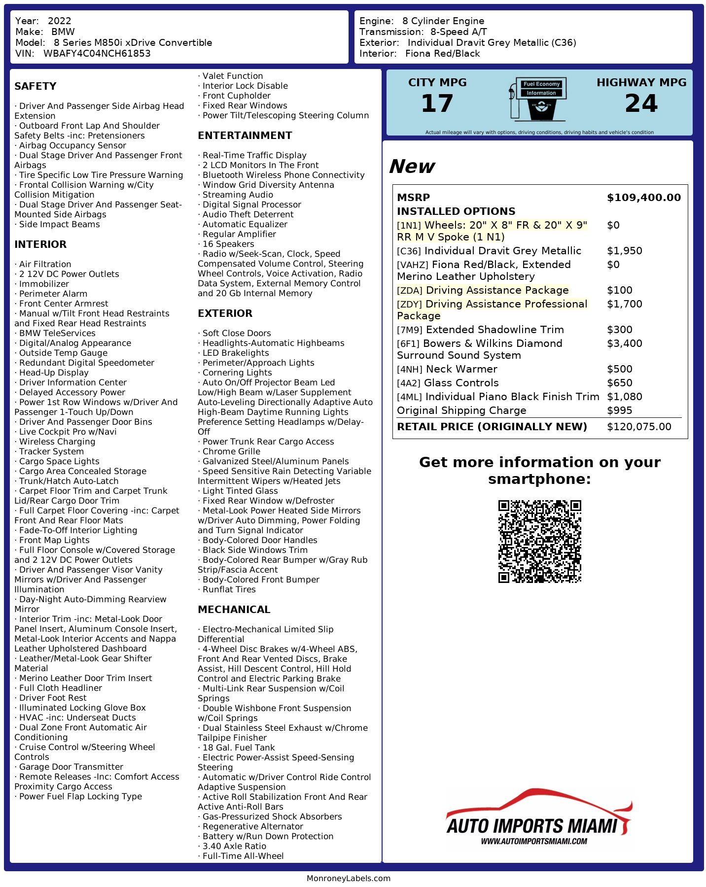 AUTO IMPORTS MIAMI PRESENTS….2022 BMW M850I XDRIVE CONVERTIBLE…