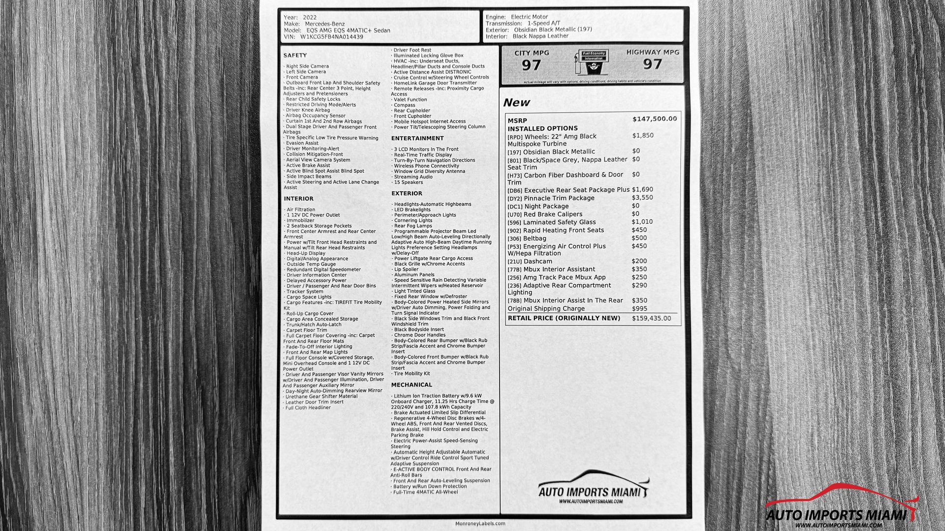 AUTO IMPORTS MIAMI PRESENTS…….2022 MERCEDES BENZ AMG EQS 4MATIC+ SEDAN…..