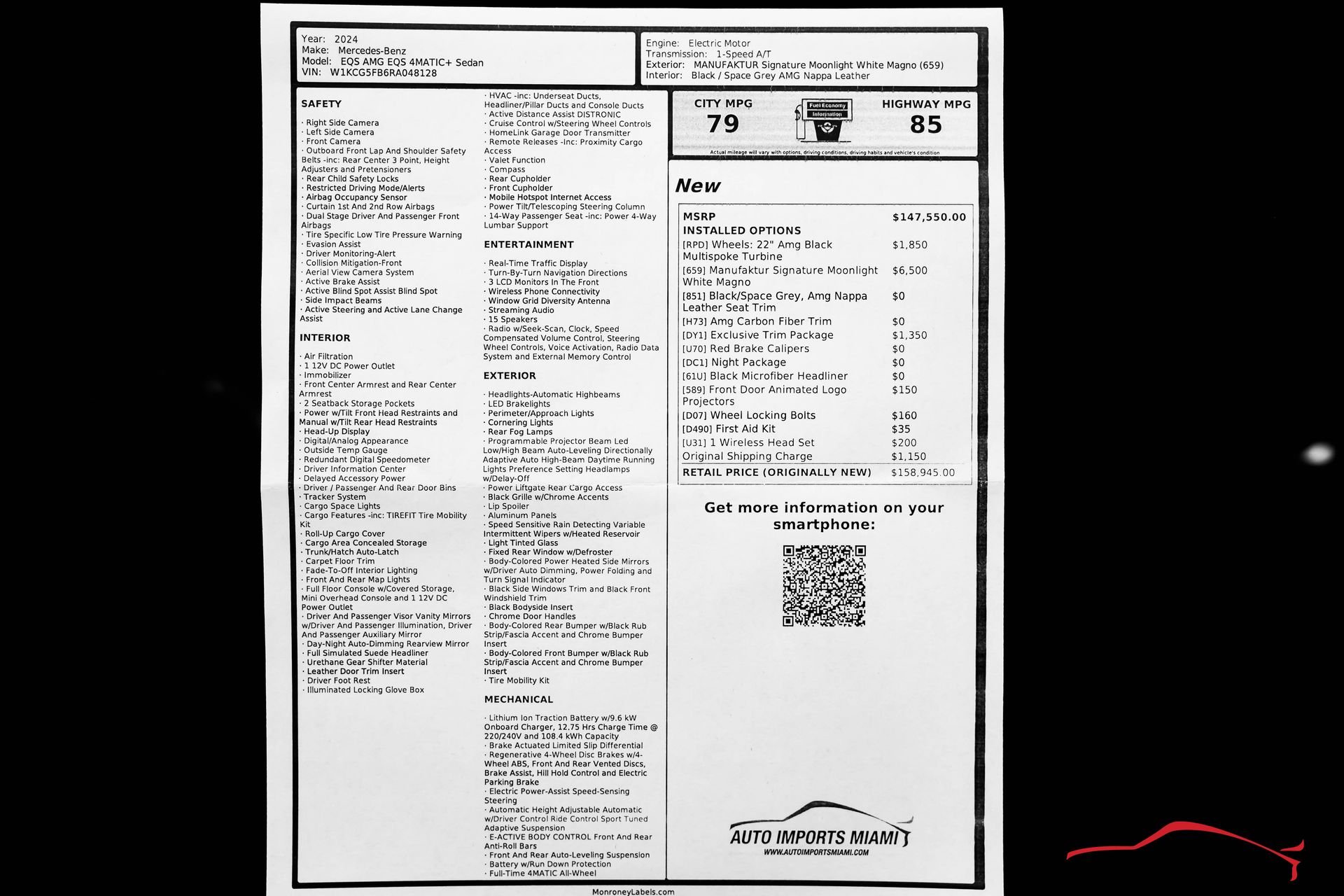 THIS STUNNING 2024 MERCEDES BENZ AMG EQS 4MATIC+ HAS A 649/751 HP FULL ELECTRIC MOTOR AND COMES WITH ALL THE RIGHT EQUIPMENT INCLUDING…….