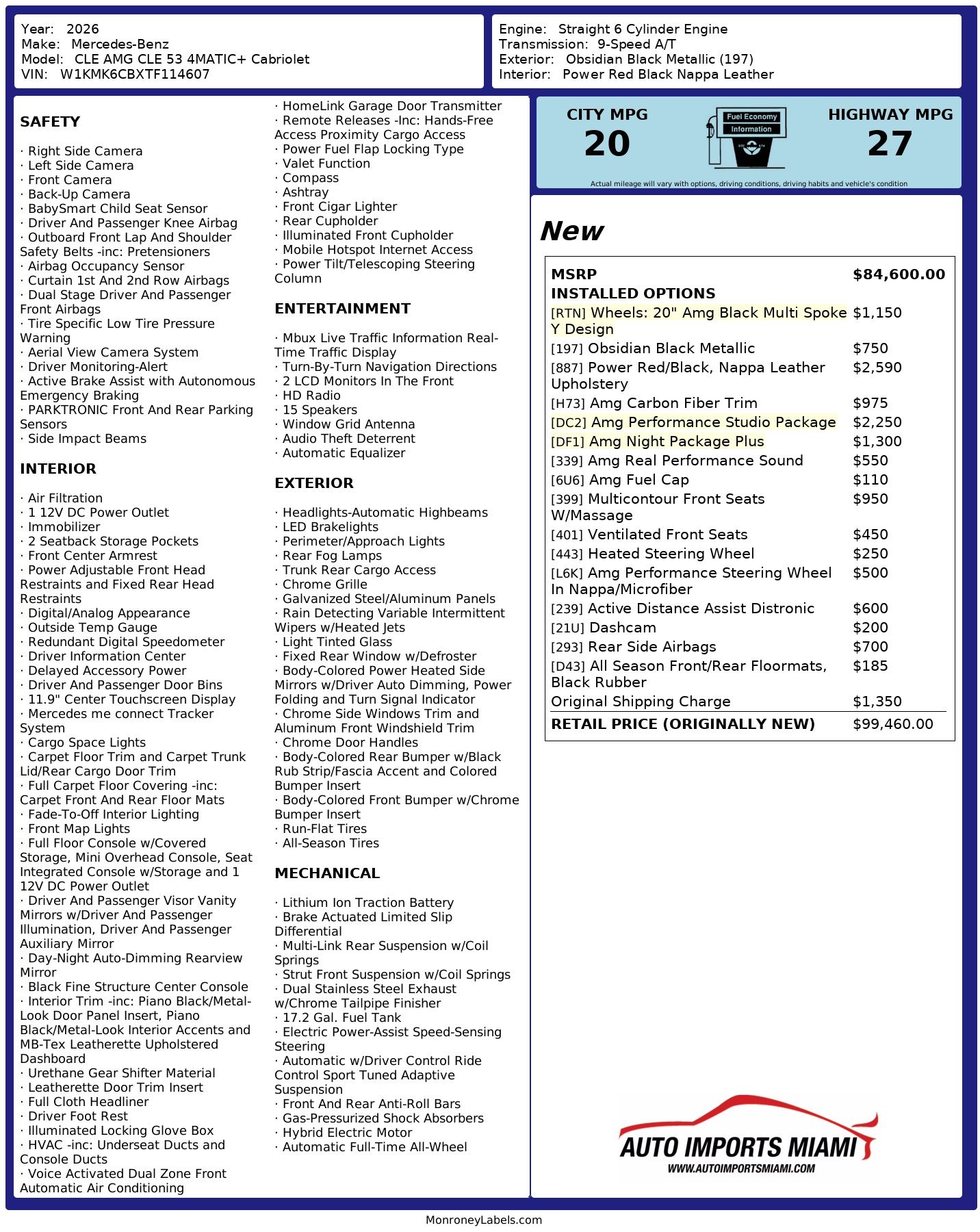 AUTO IMPORTS MIAMI PRESENTS…….2026 MERCEDES BENZ AMG CLE 53 4MATIC+ CABRIOLET….