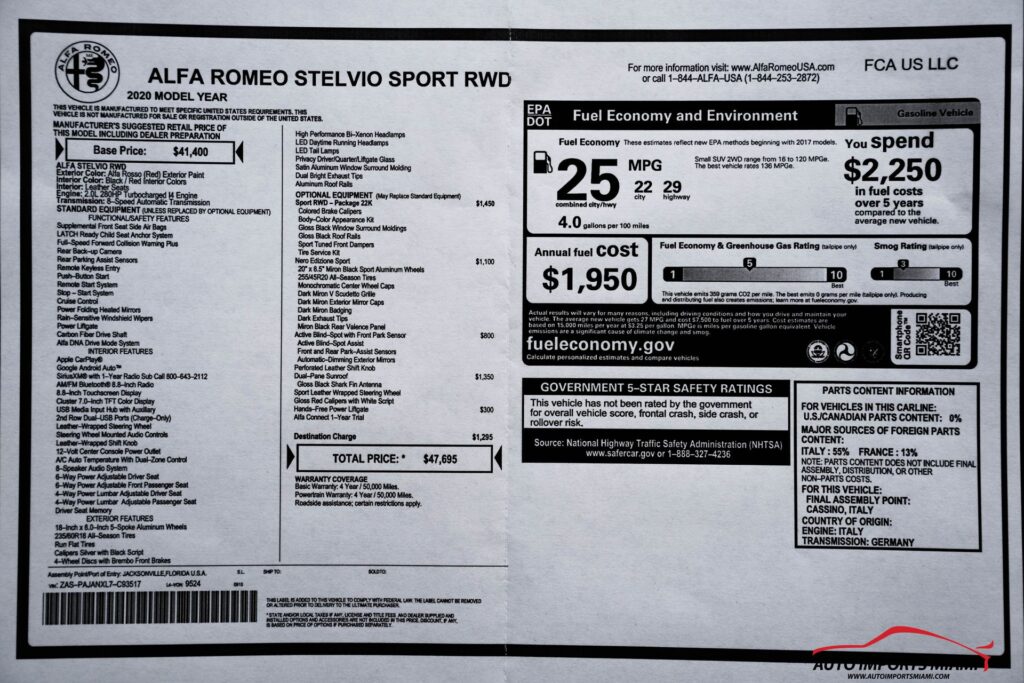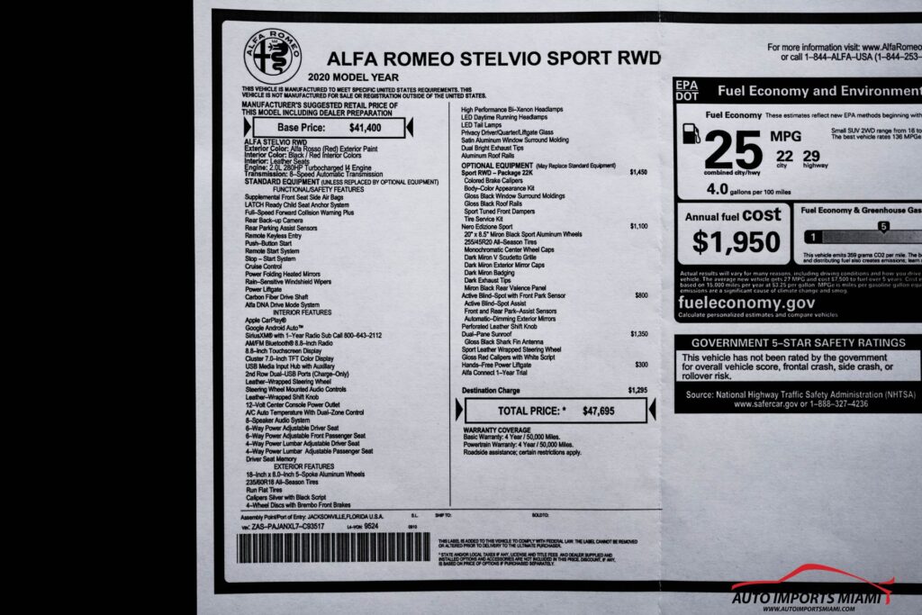 THIS STUNNING 2020 ALFA ROMEO STELVIO SPORT COMES WITH A 2.0L TURBOCHARGED ENGINE THAT PRODUCES 280HP AND COMES WITH ALL THE RIGHT EQUIPMENT INCLUDING…….