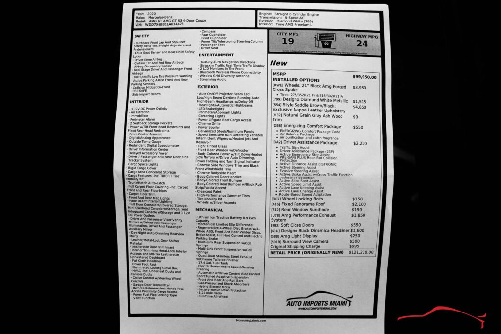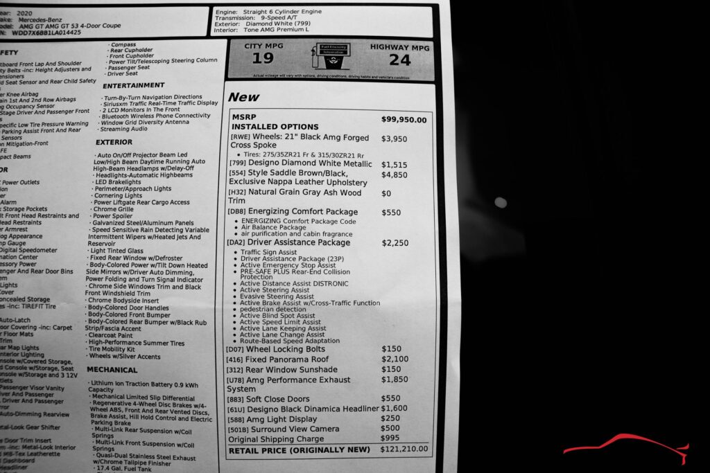 2020 MERCEDES BENZ AMG GT 53 4DR COUPE AWD….