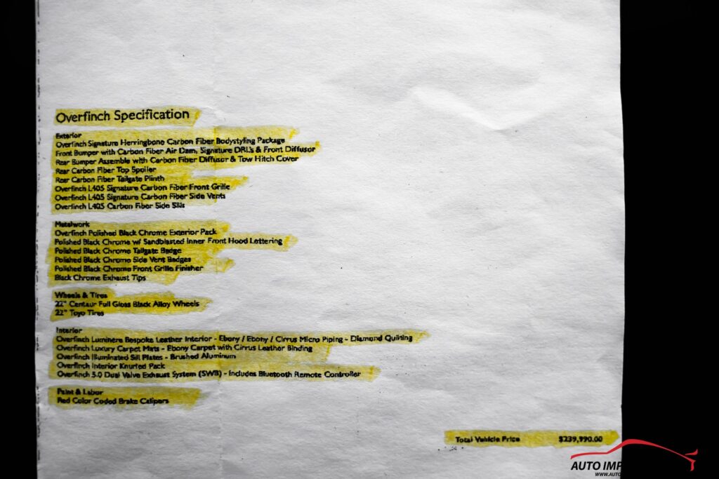 OVERFINCH SIGNATURE FULL BODY KIT—BUMPERS, EXHAUST, AND TRIM….