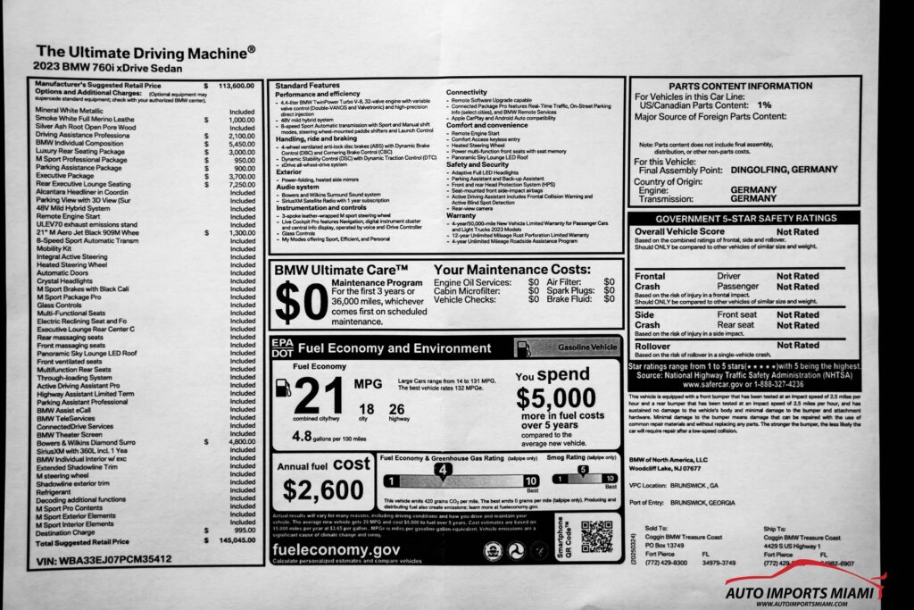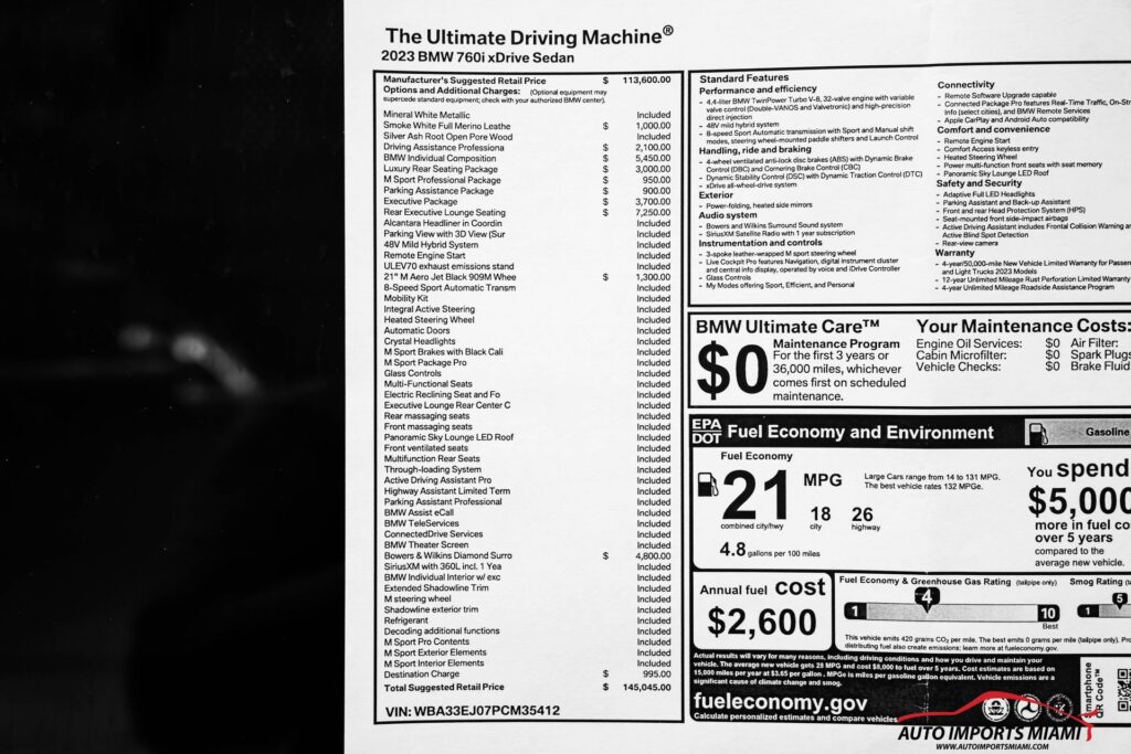 2023 BMW 760I XDRIVE M-SPORT PRO PKG SEDAN INDIVIDUAL….