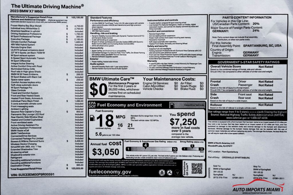 All vehicles sold by Auto Imports Miami are pre-owned, and normal wear consistent with age and mileage should be expected. Minor cosmetic imperfections such as surface scratches, rock chips, or interior wear may be present. While we strive to provide accurate descriptions, we cannot disclose every small imperfection, nor can we guarantee the accuracy of any aftermarket modifications, performance readings, or enhancements. Third-party inspections are welcomed at our facility prior to purchase. Pre-owned vehicles may not include extra keys, remotes, manuals, or floor mats.
