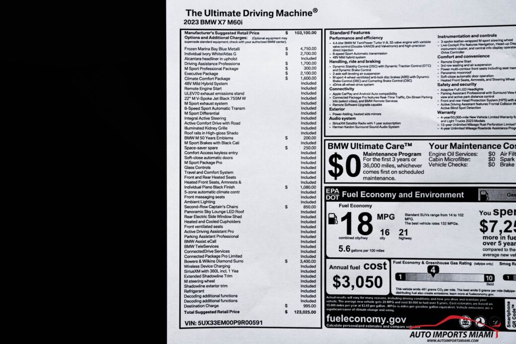 THIS STUNNING 2023 X7 M60I HAS A TWIN TURBOCHARGED V8 ENGINE AND COMES WITH ALL THE RIGHT EQUIPMENT INCLUDING…….