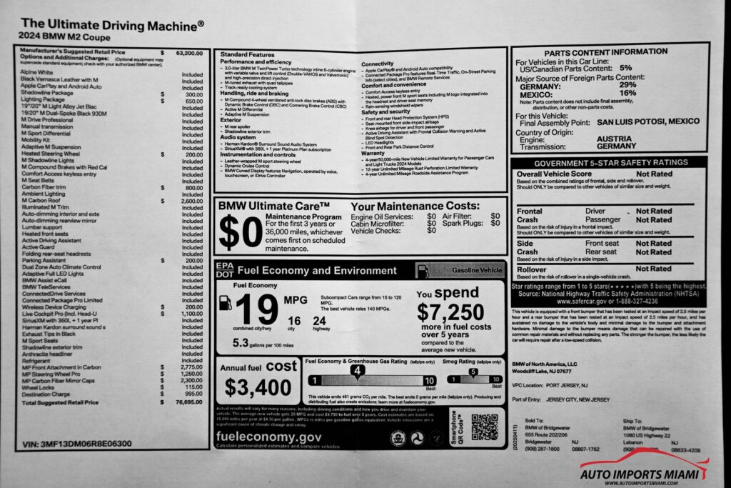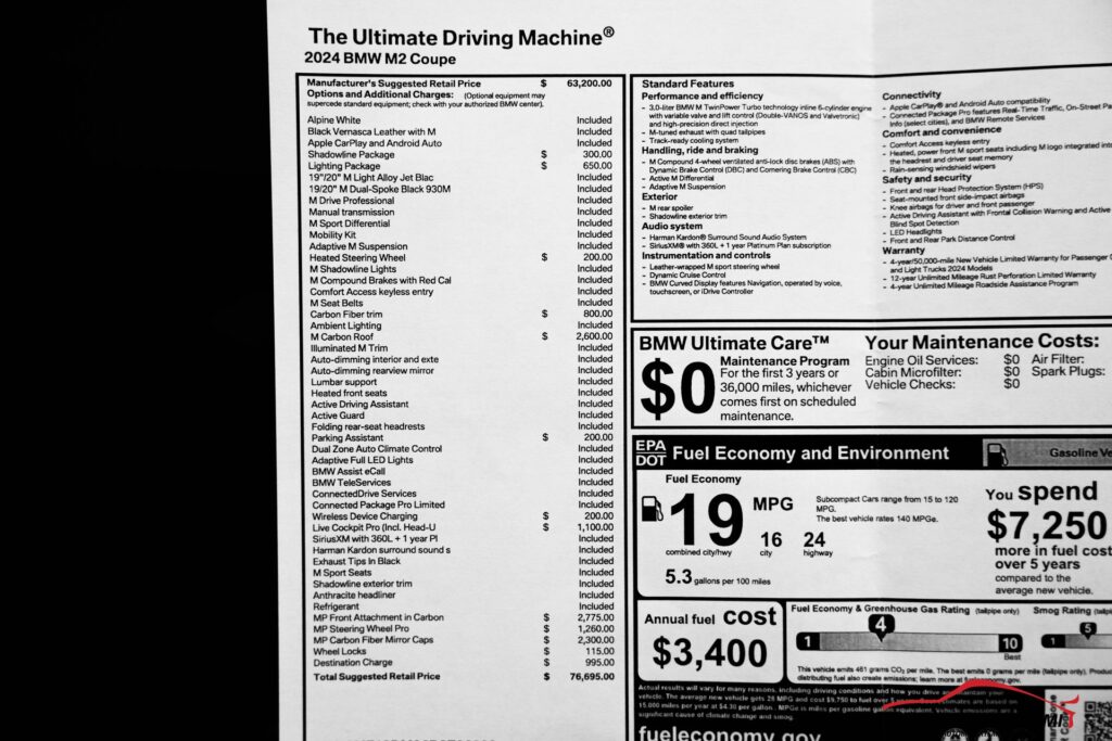 THIS STUNNING 2024 BMW M2 HAS A TWIN-TURBOCHARGED 3.0L I6 ENGINE AND COMES WITH ALL THE RIGHT EQUIPMENT INCLUDING….
