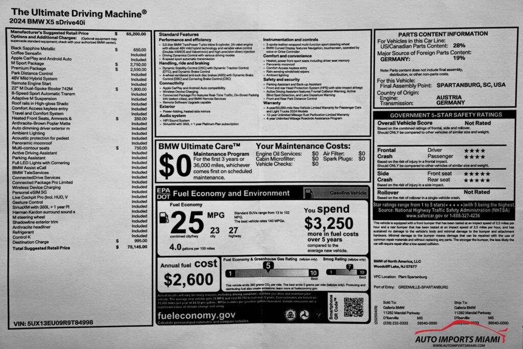 2024 BMW X5 sDRIVE40I M-SPORT PKG….